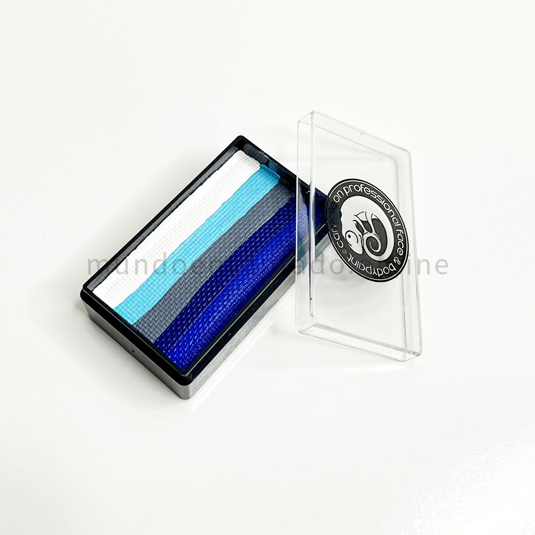 As cores Colorblock/ One Stroke são dispostas lado a lado e podem ser facilmente capturadas para criar designs de pintura facial multicolorida, fáceis de aplicar e fáceis de remover. Esta gama Cameleon é perfeita para qualquer festa e só necessita de um pincel one stroke ou uma esponja para aplicar.