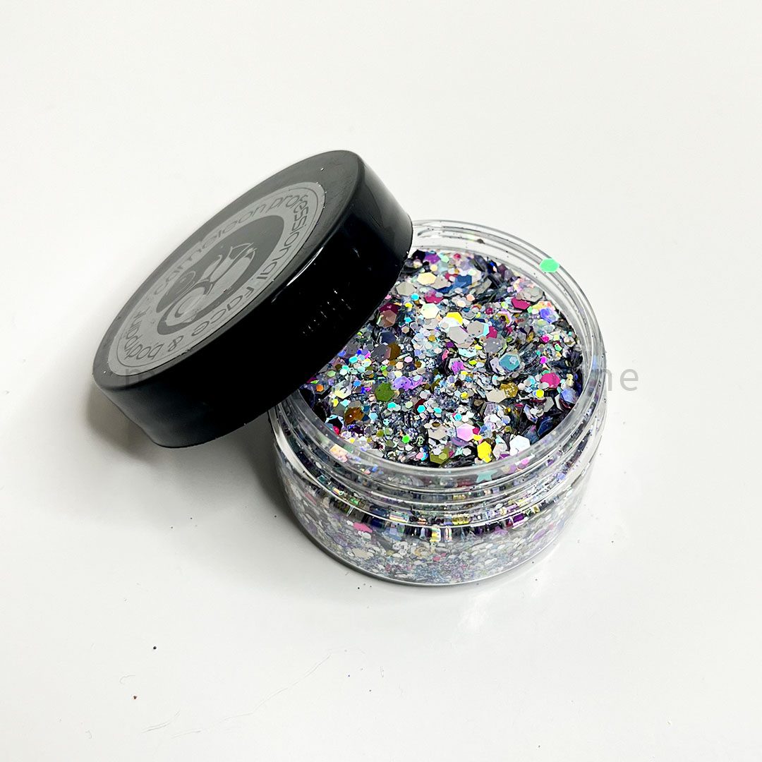 Os Glitter Chunky são compostos Polietileno tereftalato (PET), partículas refletivas que capturam a luz.